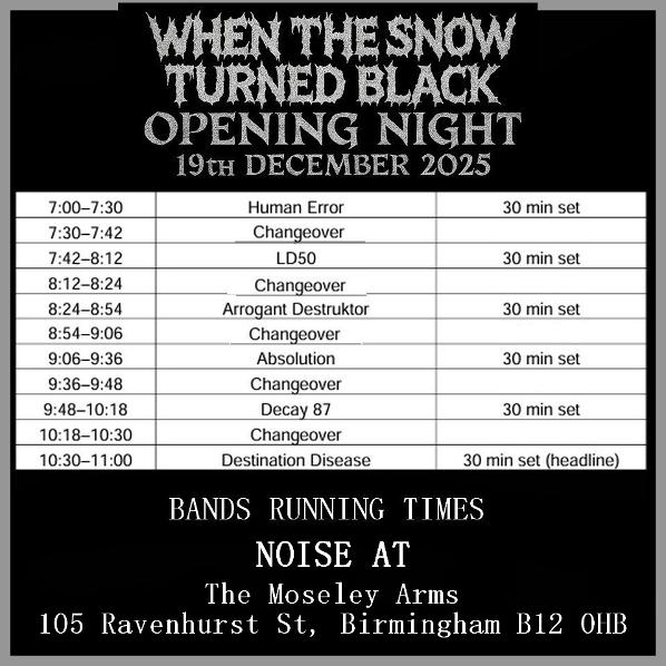 OPENING NIGHTS BANDS RUNNING TIMES BELOW !