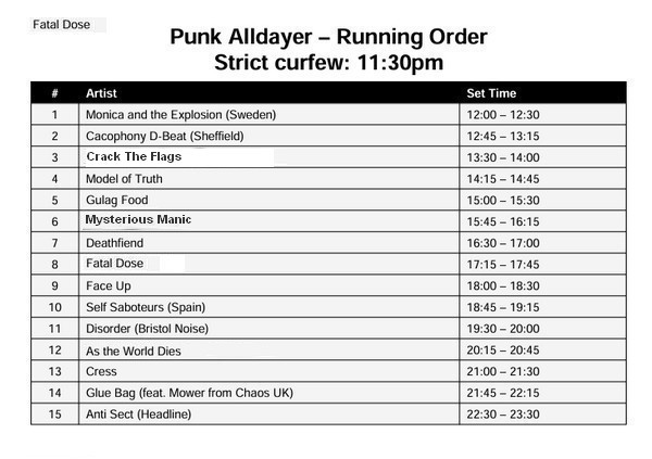 BANDS RUNNING TIMES