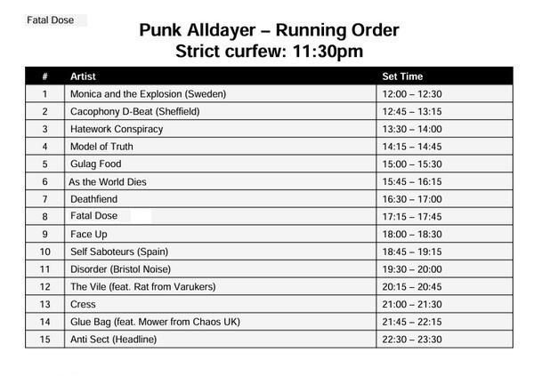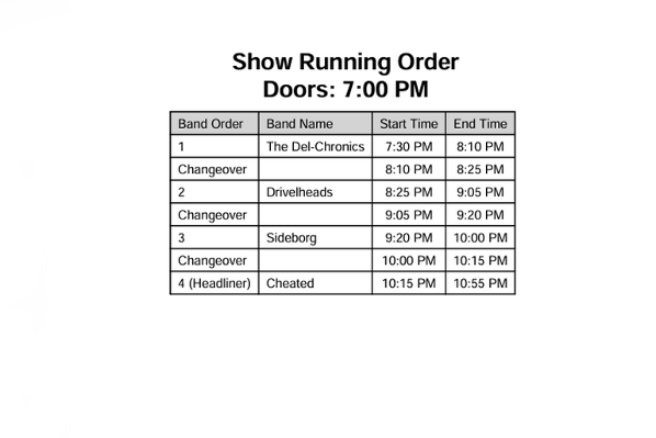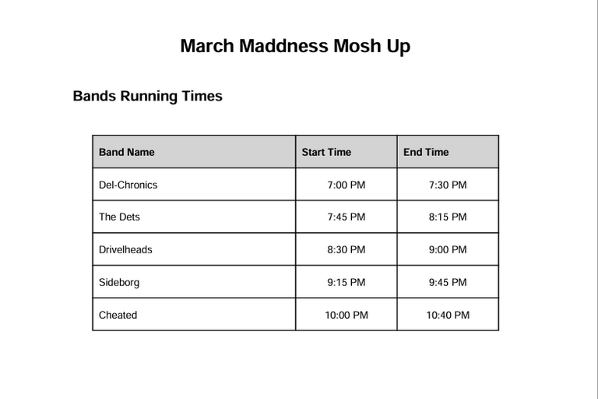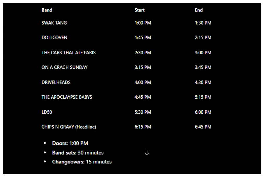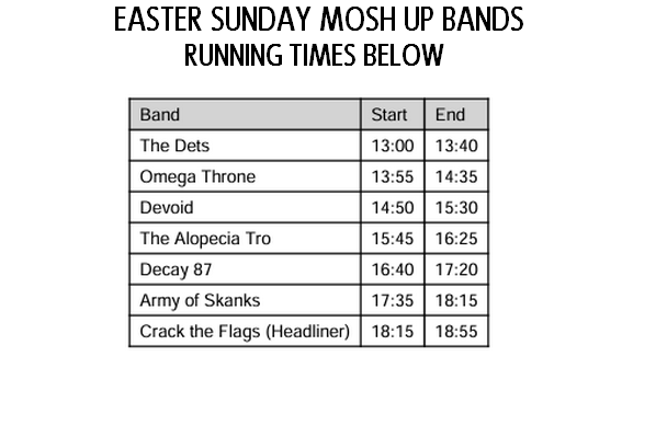 BANDS RUNNING TIMES BELOW